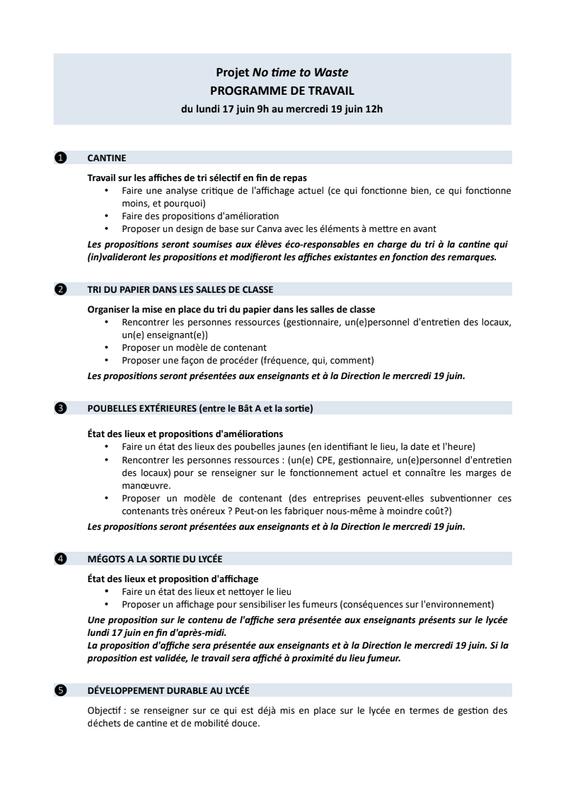 Instructions for students : how to improve the watse management in St Pouange ? (in French)