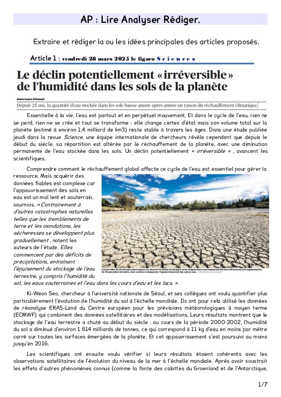 Lesson with students involved in the project the week before the meeting to study water challenges in France and Europe.
