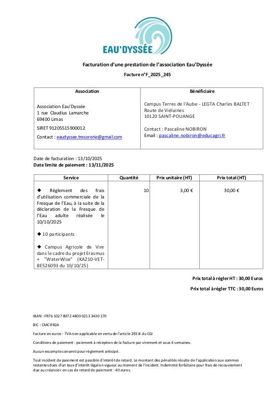 Facture F 2025 245 Campus Terres De L'Aube